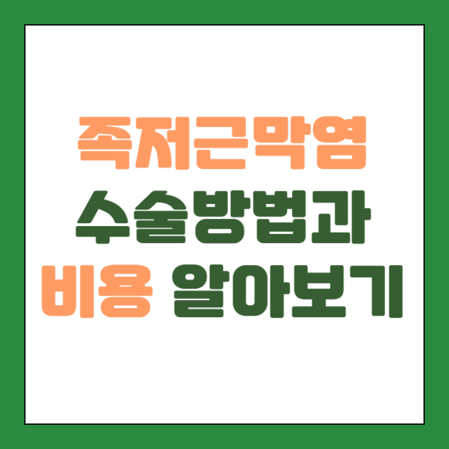 | 족저근막 부분 절개술 | 약 50만 원 ~ 100만 원 | 간단한 수술로 비용이 낮으며, 의료보험 적용 시 추가 비용 감소 가능. |